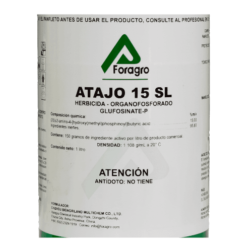 - Descripción General:Atajo 15 SL contiene glufosinato de amonio en su isómero más activo, ofreciendo control no selectivo de malezas jóvenes. Recomendado en barbecho o cultivos transgénicos tolerantes. Composición: