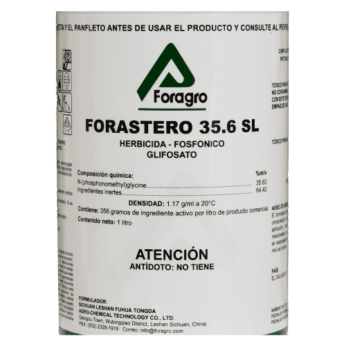 - Descripción General:Forastero 36 SL aporta un 36% de glifosato, permitiendo un control no selectivo y eficaz en malezas de hoja ancha, gramíneas y ciperáceas en barbecho o aplicaciones dirigidas. Composición:
