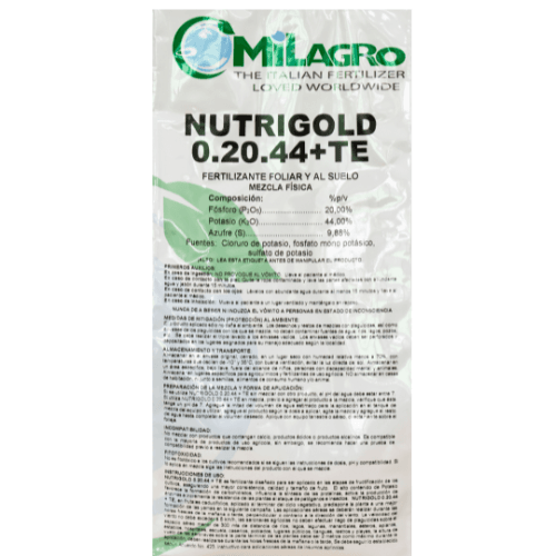 - Resumen breve:“Nutrigold 0-20-44 – Alto fósforo y potasio para máxima floración y llenado.”