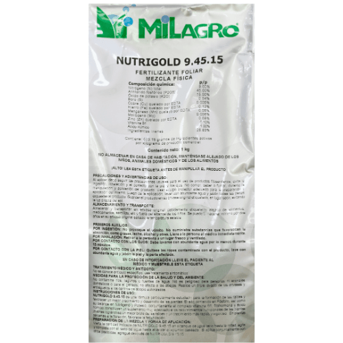 - Resumen breve:“Nutrigold 9-45-15 – Alto fósforo para un arranque y floración potentes.”