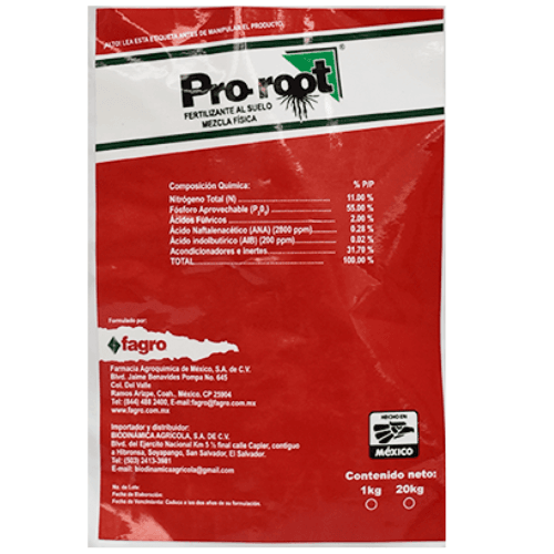 - Descripción General:Proroot contiene altos niveles de fósforo y hormonas vegetales (ANA, AIB) para estimular la formación de raíces en almácigos, charolas y trasplantes. Composición: